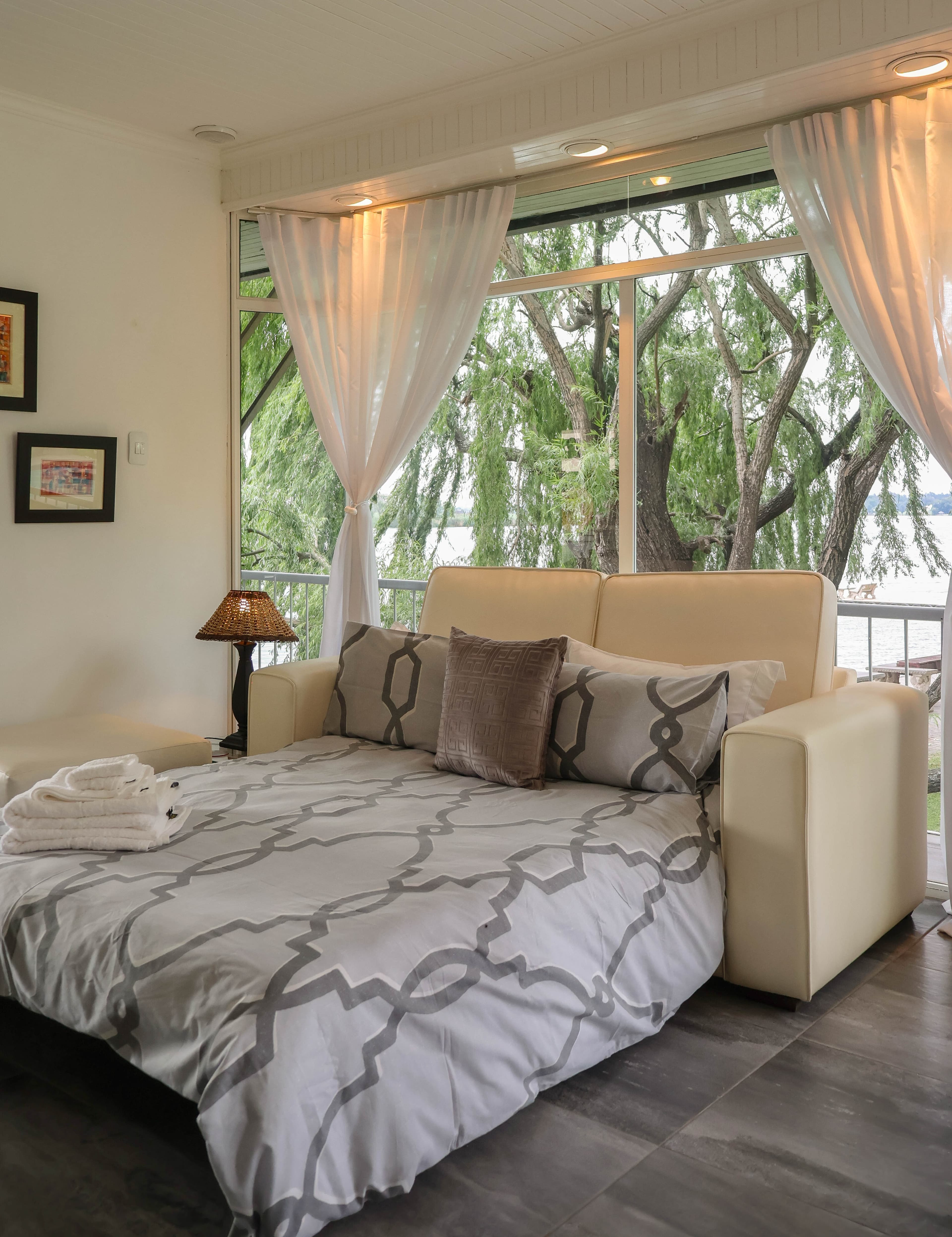 Wake up to the gentle sounds of the river in our unique Boathouse Bungalow. This charming property sits right on the water's edge, offering unobstructed views and a truly immersive riverside experience. With modern comforts, an open-plan design, and a private balcony, it's the perfect romantic getaway.